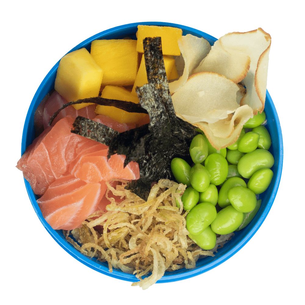 Tipicamente havaiano, o poke leva peixe cru fatiado, servido em uma tigela com arroz ou folhas, com molho à base de shoyu e acompanhamentos como frutas e algas.